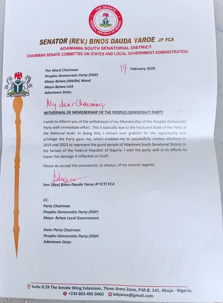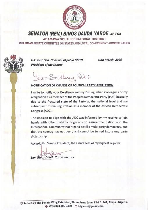 Senator Binos Dauda Yaroe, representing Adamawa Southern Senatorial District, has categorically dismissed speculations linking him to the 2027 Adamawa State governorship race, reaffirming his commitment to return to the Senate for a third term…..read more